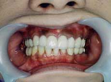 咬む力が正しく伝わらないので、簡単な矯正を行って傾斜した歯をまっすぐに起こす。 |